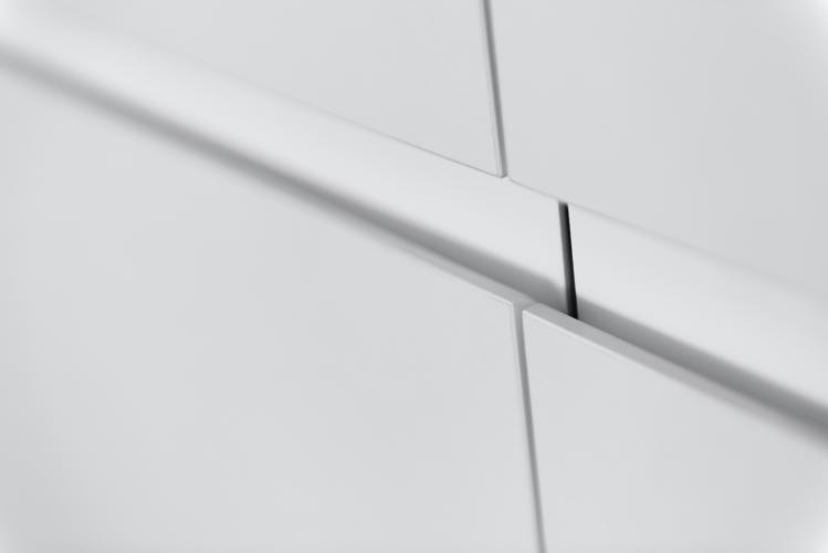 Blikvanger in deze kantoorruimte is de indrukwekkende kastenwand en werkmeubel uitgevoerd in laminaat in het populaire kleur W1000.