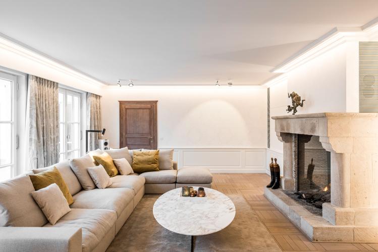 De bouwheer koos voor de samenwerking tussen interieurarchitect Pedro Verhue en totaalaannemer De Laere Decor voor de renovatie van deze prachtige villa. Het karakter van de woning werd behouden en er werd een mooie harmonie gecreëerd tussen de bestaande elementen zoals de trap, haard, deuren, etc. en de nieuwe elementen. Het resultaat is een strakke en hedendaagse inrichting die de ruimtes mooi in elkaar laat over vloeien.