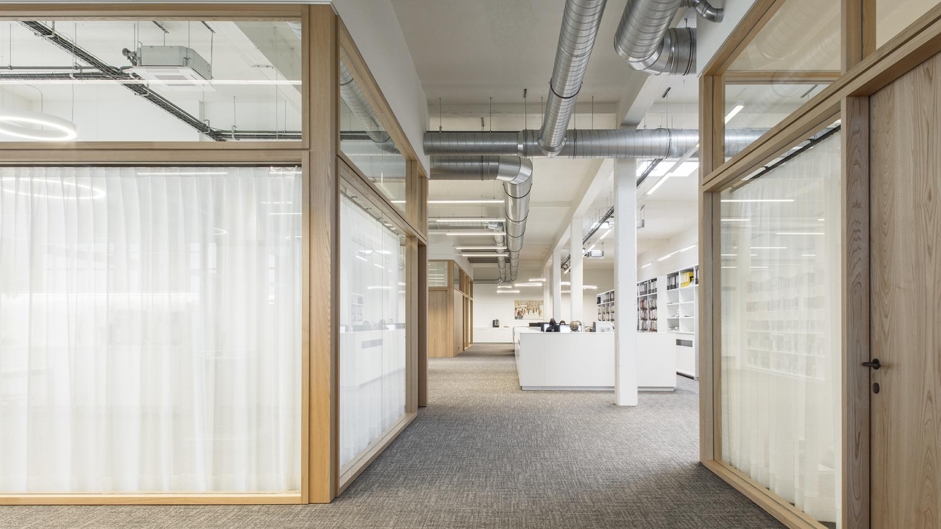 Samen met bouwheer en architecten werd zeer veel belang gehecht aan de akoestische opbouw van de individuele kantoren en vergaderzalen. Akoestisch absorberende PETAC panelen zorgen ervoor dat het geluid correct gedempt wordt. De volle wanden en de glazen wandopbouw zorgen voor perfecte isolatie naar geluidsoverdracht toe.