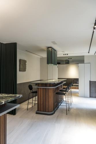 In een geslaagde transformatie heeft het team van B Brand het mooie art-deco gebouw omgevormd tot een eigentijds meeting- en conferentiecentrum. De essentie van de renovatie lag in het verlenen van een hedendaagse invulling aan de kenmerkende art-deco stijl. De basismaterialen, donkergroene natuursteen, notelaar en messing, werden met vakmanschap toegepast. De lambrisering, die door het gehele gebouw loopt, integreert subtiel met de gordijnen, het schilderwerk en de vaste meubilering. Het ontwerp is sober, functioneel en strak, waarbij al het meubilair op maat is vervaardigd.